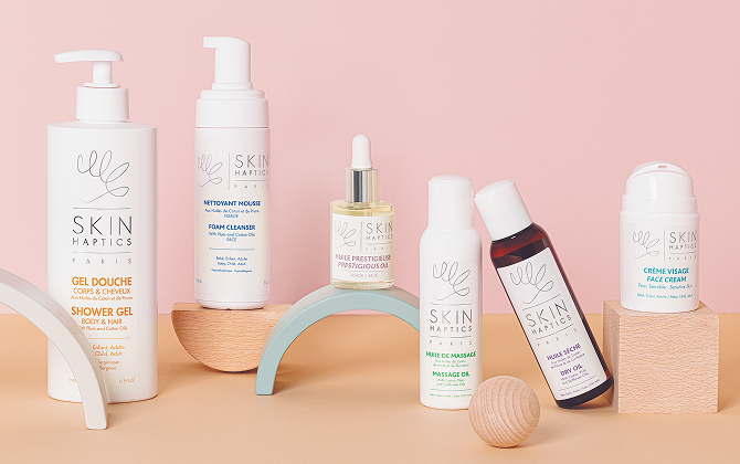 Биохимия маманы әрі маркетинг саласында қосымша білімі бар (ESSEC Business School) Сандрин Дахан ірі косметикалық және дермокосметикалық брендтерде 10 жыл жұмыс істеп, 2010 жылы өз бренді – Skinhaptics-ті құрды. Үш жүкті кезінде ол баласымен байланысудың жаңа әдістерін және өз денесімен қайта байланысу жолдарын ашты: талассотерапиядан бастап, босануға дейінгі және босанғаннан кейінгі массаждарға дейін. Skinhaptics – ғылым мен әл-ауқаттың біріккен нәтижесі. Брендтің мақсаты – анамдарға және болашақ аналарға тері күтімінің барлық артықшылықтарын жеткізу. Бүгінгі стрессті, виртуалды қоғамда біз сезімдерге қайта оралып, денеге орталық рөл берудің маңыздылығын сеземіз. Дұрыс туып, дұрыс өмір сүру – Skinhaptics философиясы. Сандрин Дахан – Cosmetic Vallée, Société Française de Cosmétologie және FEBEA мүшесі.
